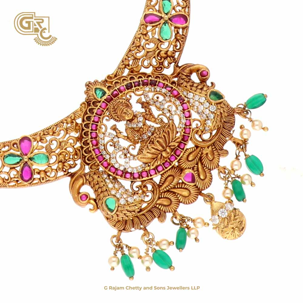 Antique Lakshmi Floral Gold Plated Haram
